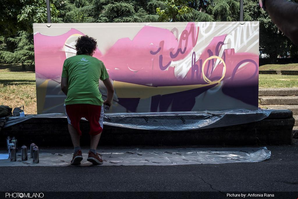 Nella postazione dedicata al live painting due schermi a led proiettano gli scatti di tutti i partecipanti al contest fotografico, una mostra multimediale a cielo aperto, immersa nel verde nei pressi del playground.